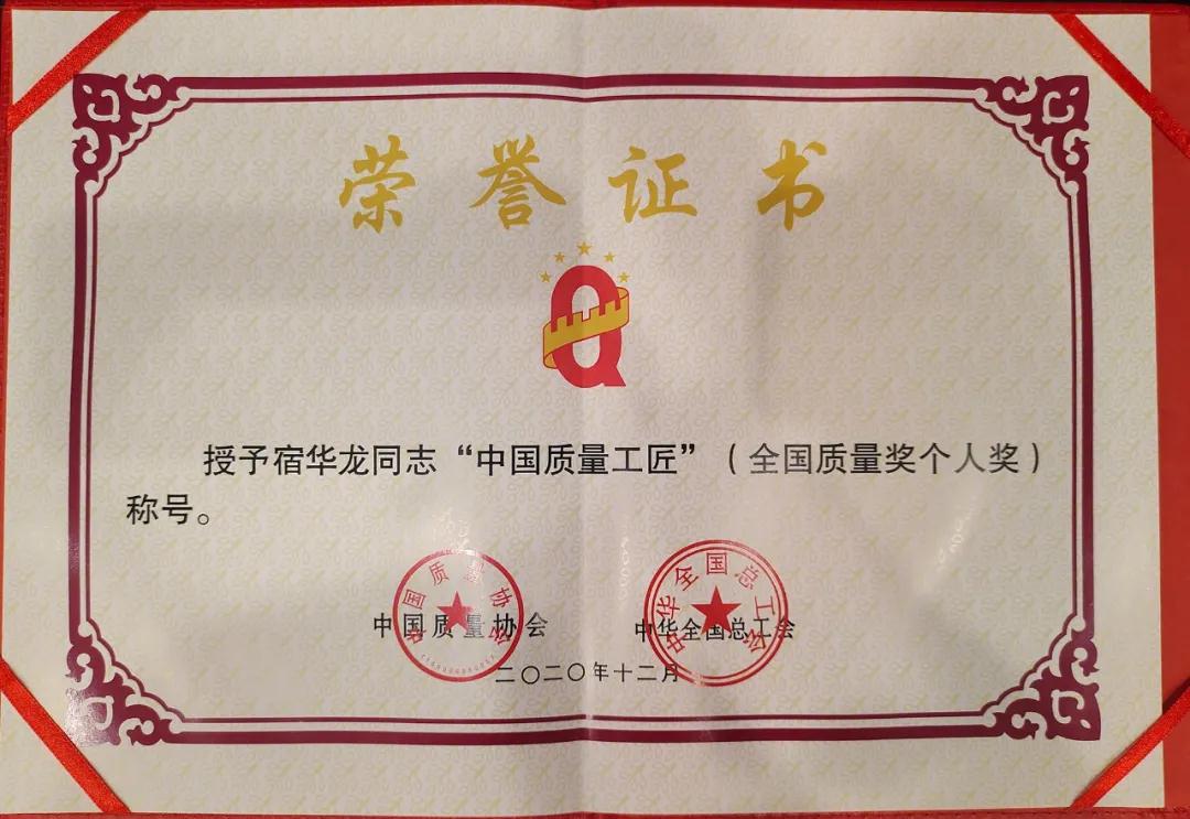 兵器工業(yè)集團(tuán)宿華龍榮獲第十九屆全國質(zhì)量獎(jiǎng)“中國質(zhì)量工匠”稱號 |