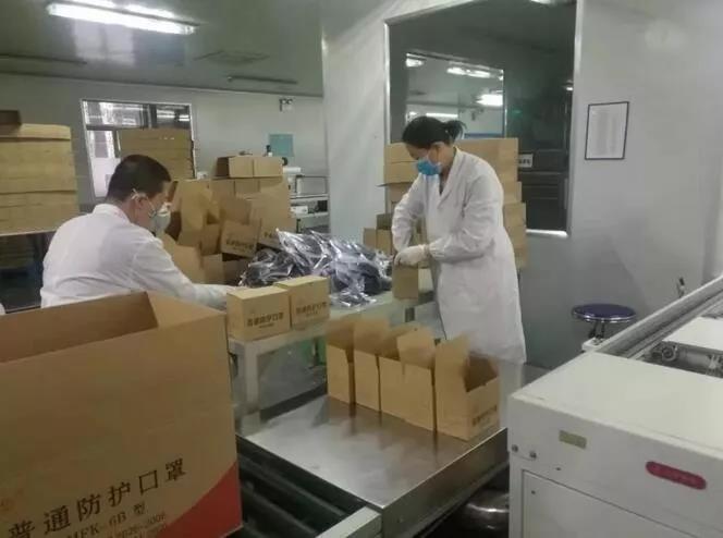 推動口罩包裝流水線作業(yè),防護口罩日產(chǎn)量達7萬只