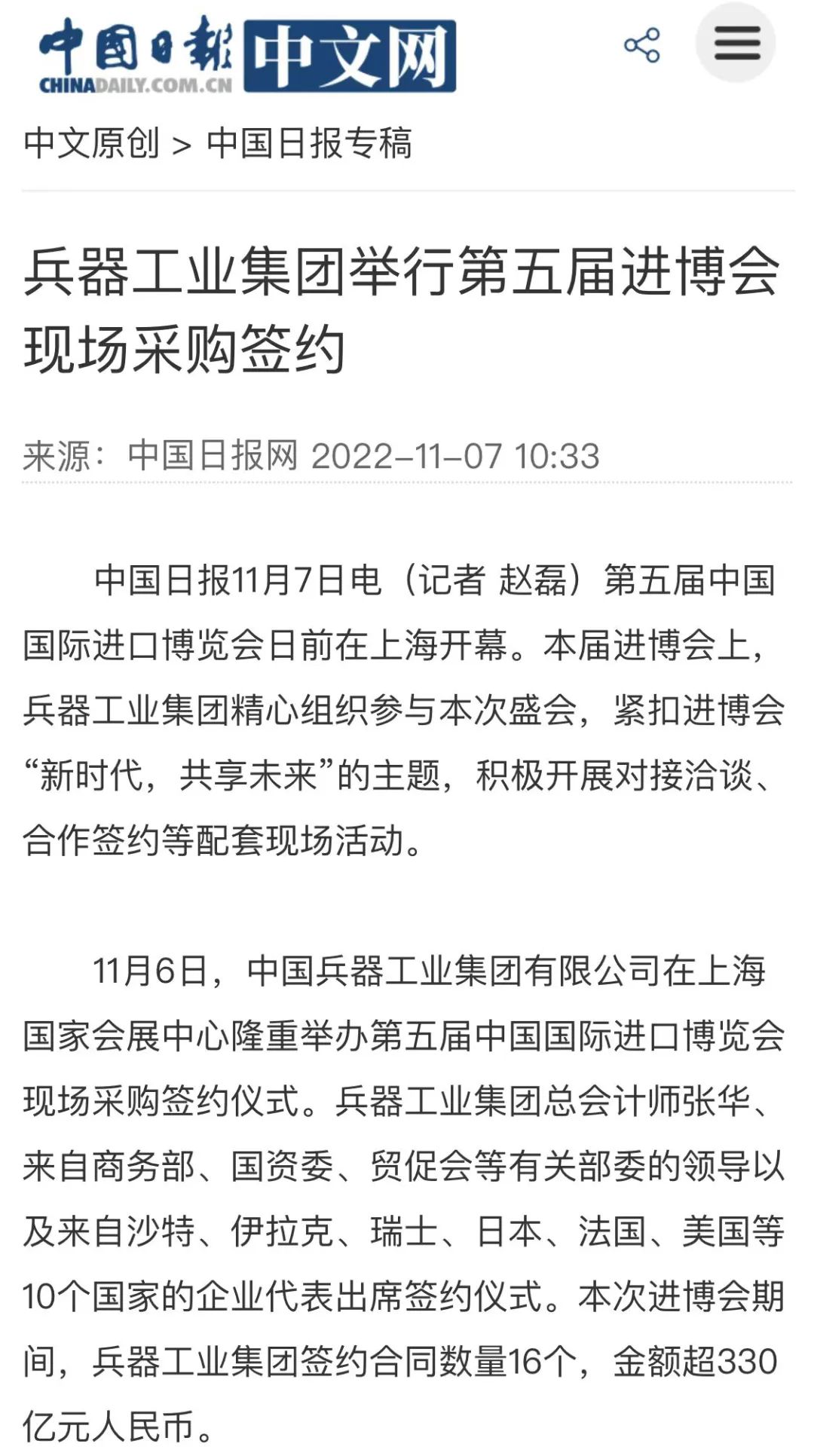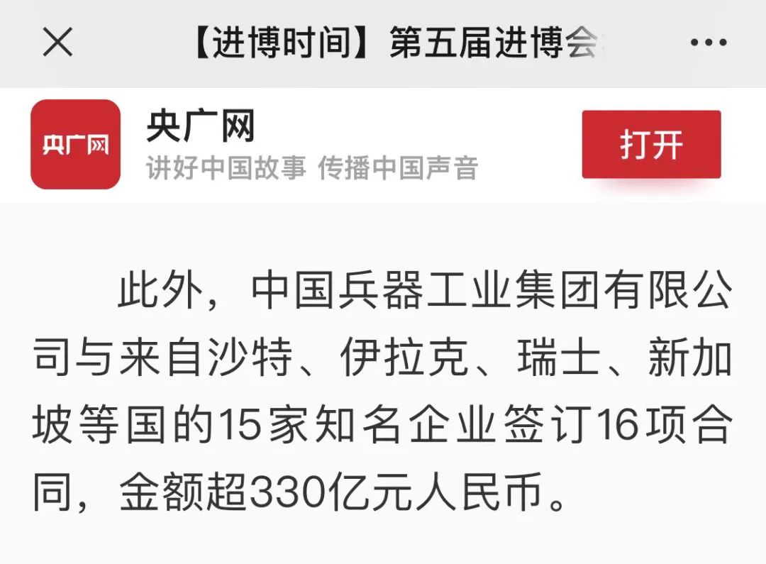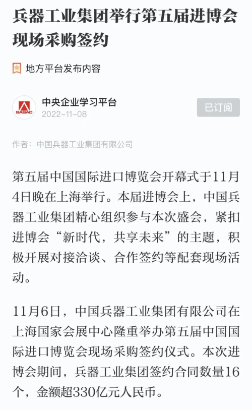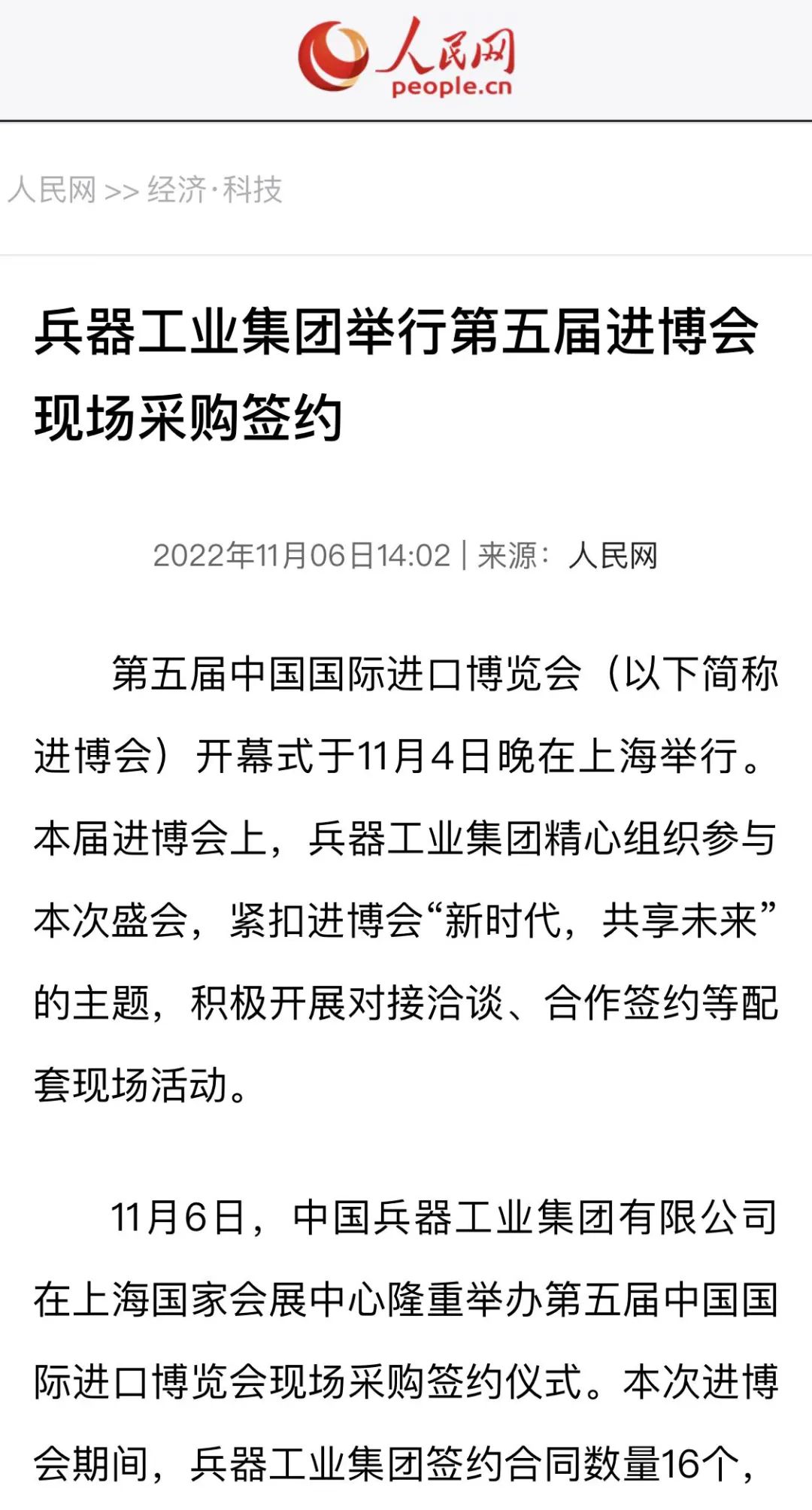 兵器工業(yè)集團(tuán)第五屆進(jìn)博會(huì)成果受到廣泛關(guān)注 |