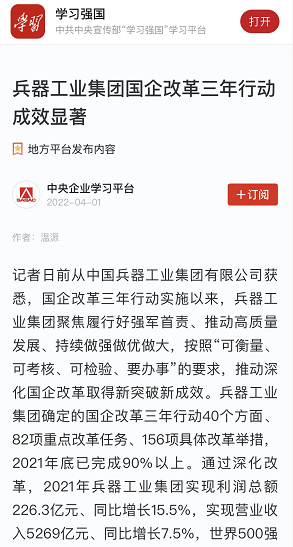 兵器工業(yè)集團(tuán)國企改革三年行動工作成效引發(fā)廣泛關(guān)注丨國企改革看兵器 |