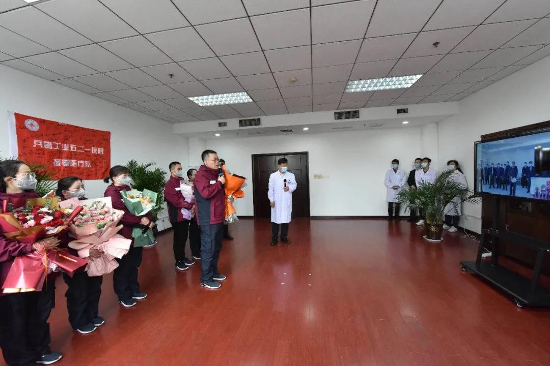 置業(yè)集團(tuán)521醫(yī)院2月2日、2月15日分兩批派出杭博、郭苓、緱豪兵、呂戈、侯永生、曹利娜、楊嬌等7名醫(yī)護(hù)人員馳援湖北抗疫一線。4月21日上午,返程隊(duì)員全部結(jié)束休整平安回院。焦開河專程視頻連線521醫(yī)院7名援鄂醫(yī)療隊(duì)隊(duì)員,代表集團(tuán)公司黨組對(duì)援鄂醫(yī)療隊(duì)隊(duì)員致以崇高的敬意和誠摯的慰問。