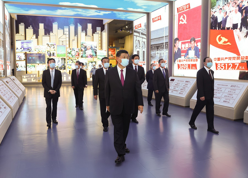 新近落成的中國共產(chǎn)黨歷史展覽館巍然矗立,氣勢恢宏。下午3時20分許,習(xí)近平等黨和國家領(lǐng)導(dǎo)同志來到這里,步入展廳參觀展覽。展覽以“不忘初心、牢記使命”為主題,精心設(shè)計了“建立中國共產(chǎn)黨 奪取新民主主義革命偉大勝利”、“成立中華人民共和國 進(jìn)行社會主義革命和建設(shè)”、“實行改革開放 開創(chuàng)和發(fā)展中國特色社會主義”、“推進(jìn)中國特色社會主義進(jìn)入新時代 全面建成小康社會 開啟全面建設(shè)社會主義現(xiàn)代化國家新(人民日報)征程”4個部分,通過2600余幅圖片、3500多件套文物實物,第一次全方位、全過程、全景式、史詩般展現(xiàn)中國共產(chǎn)黨波瀾壯闊的百年歷程,濃墨重彩地反映黨的不懈奮斗史、不怕犧牲史、理論探索史、為民造福史、自身建設(shè)史,使人們深刻認(rèn)識到紅色政權(quán)來之不易、新中國來之不易、中國特色社會主義來之不易,深刻認(rèn)識到中國共產(chǎn)黨為什么能、馬克思主義為什么行、中國特色社會主義為什么好。